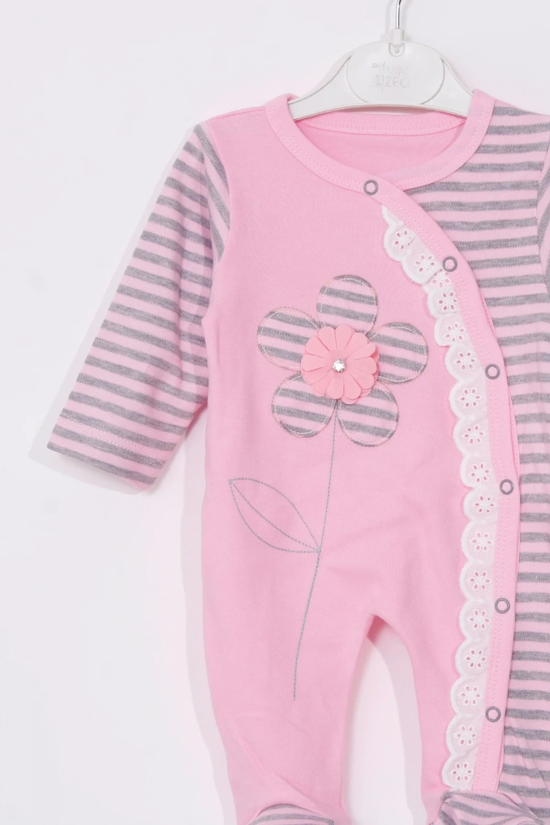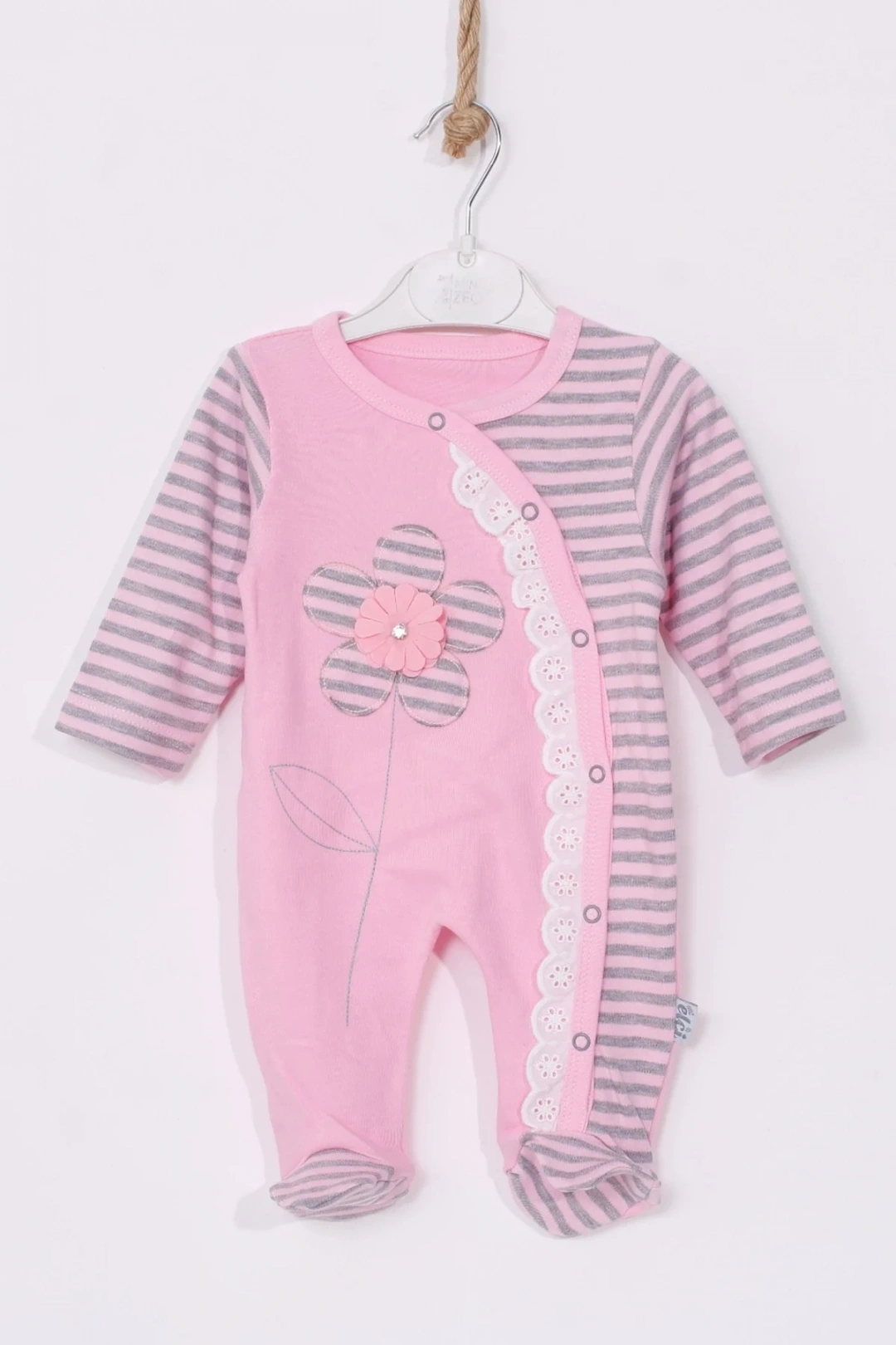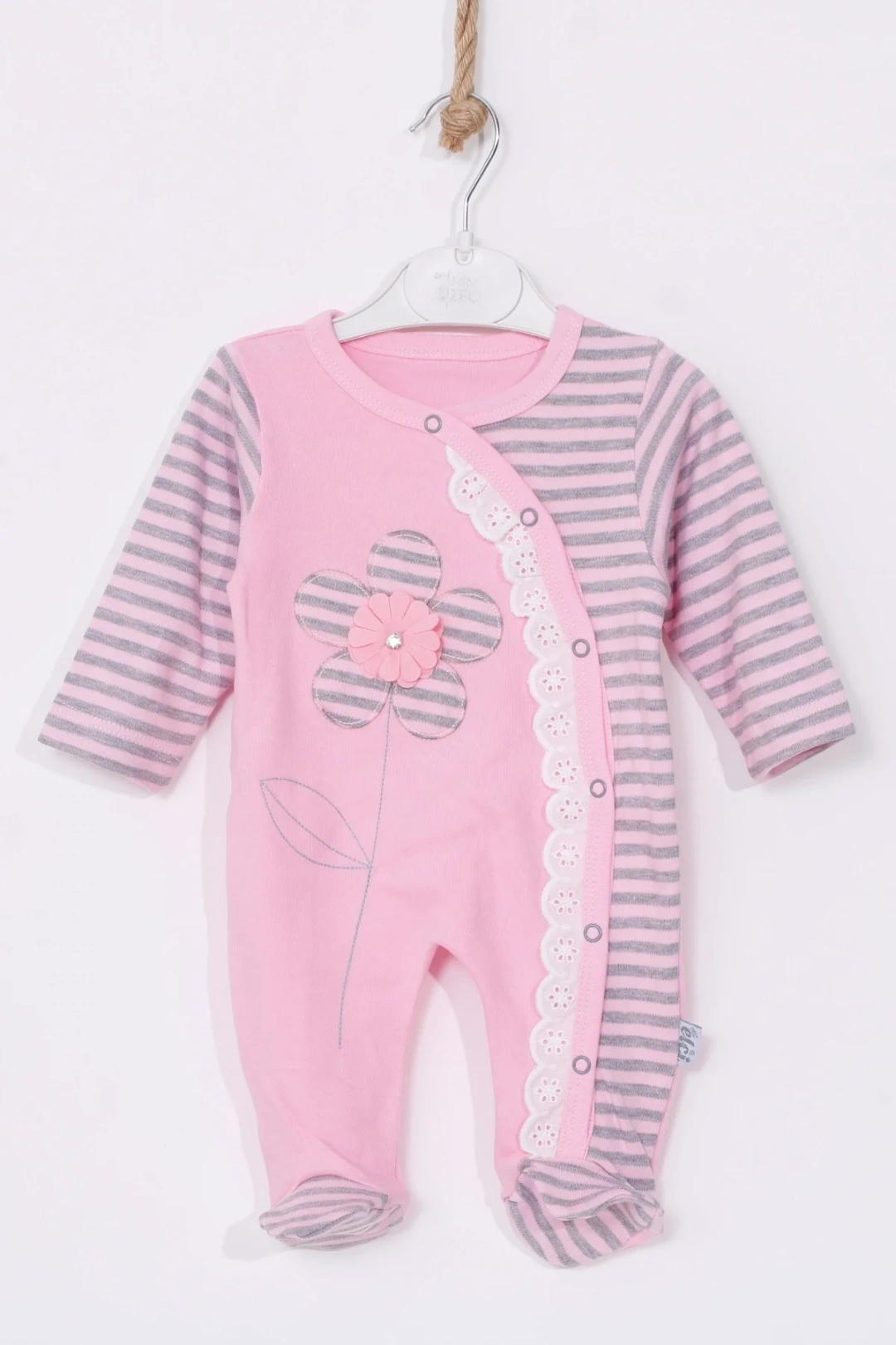 Çiçek Nakışlı % 100 Pamuk Ayaklı Kız Bebek Tulumu Ürün Türkiye'de, Cilde Dost Kumaştan Üretilmiştir