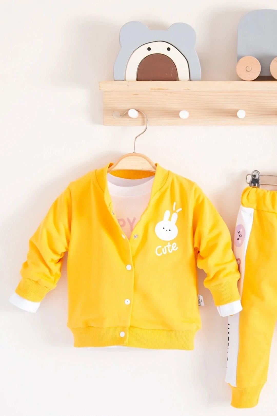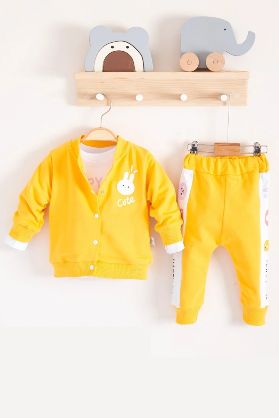 Cute Funny Desenli Kapişonlu Pamuklu 3'lü Kız Bebek Takımı Ürün Türkiye'de, Cilde Dost Kumaştan Üretilmiştir
