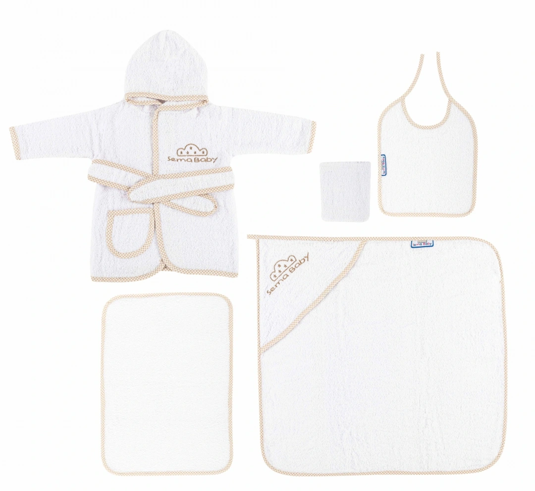Sema Baby 5 Parça Bebek Bornoz Seti - Ekru